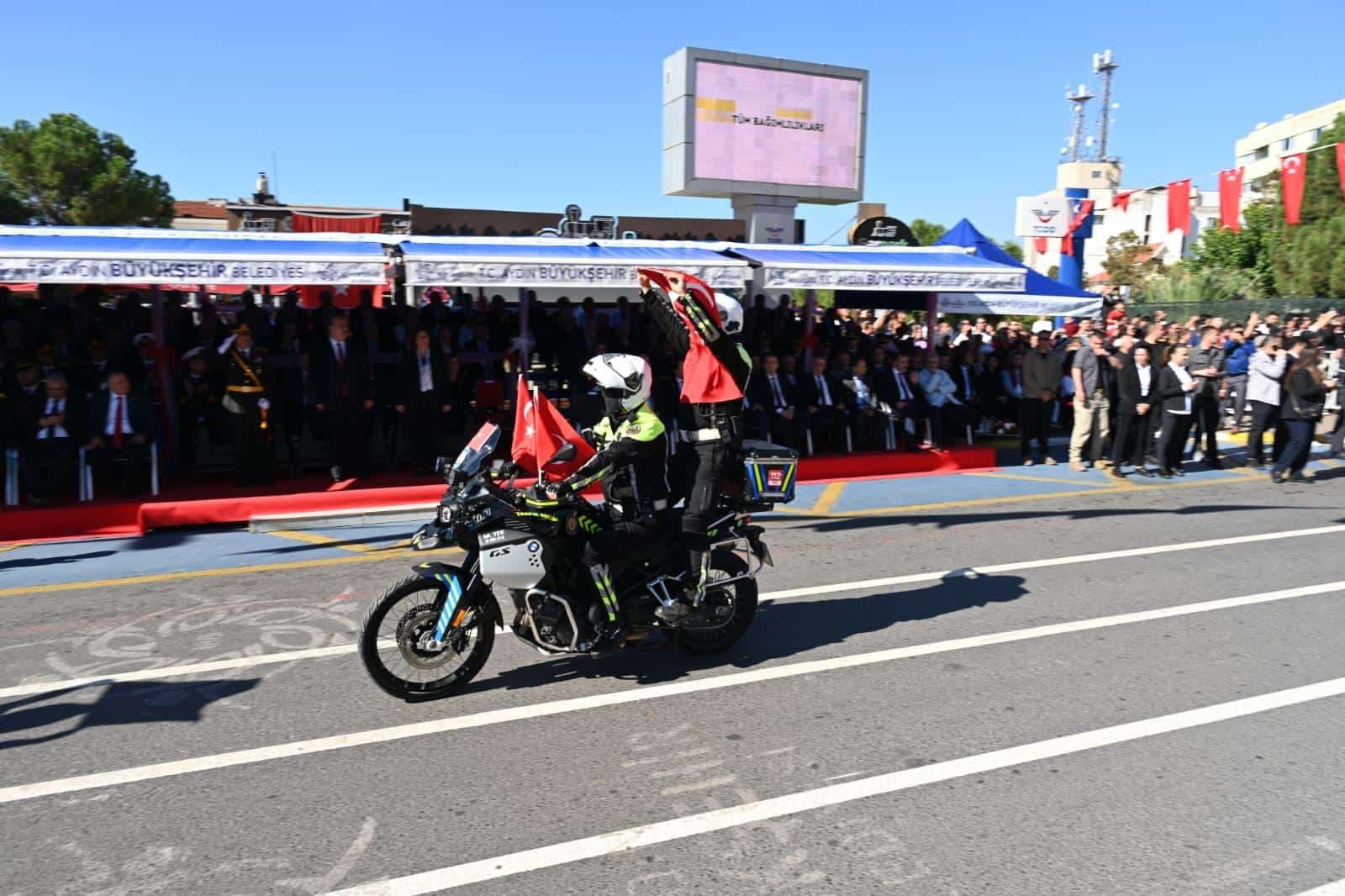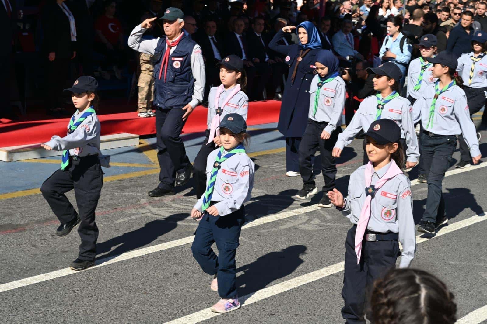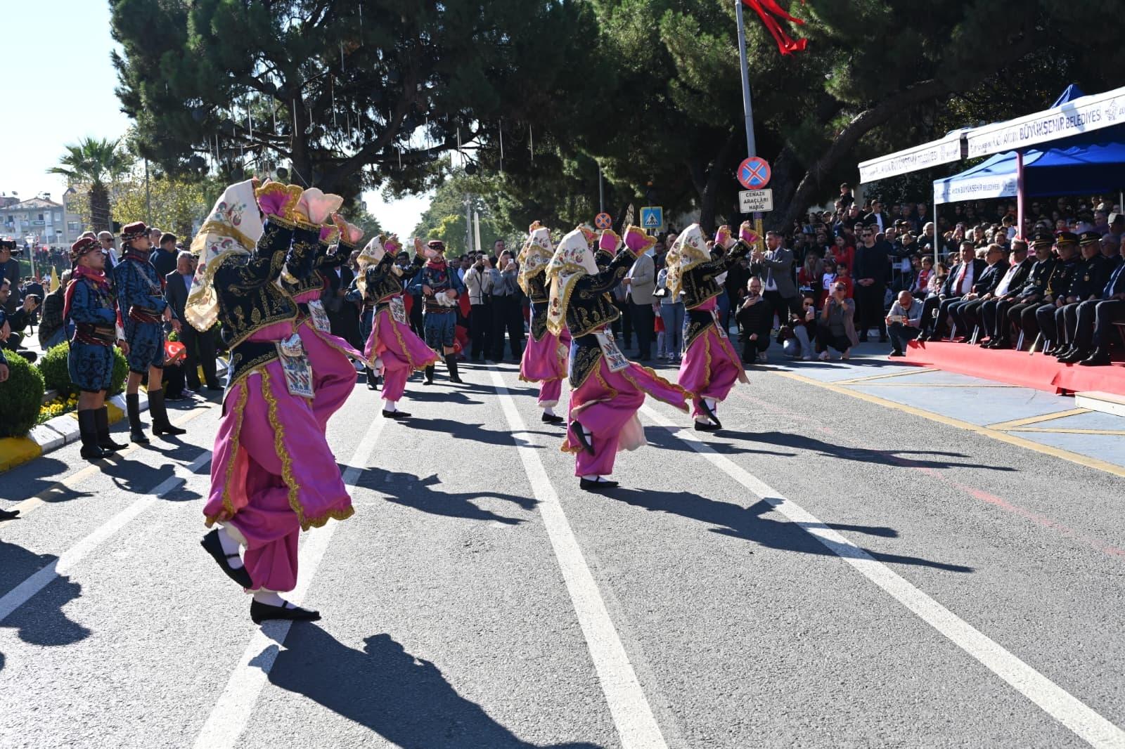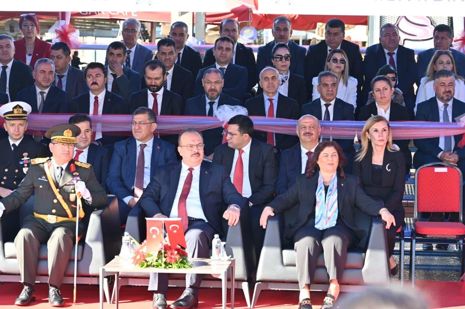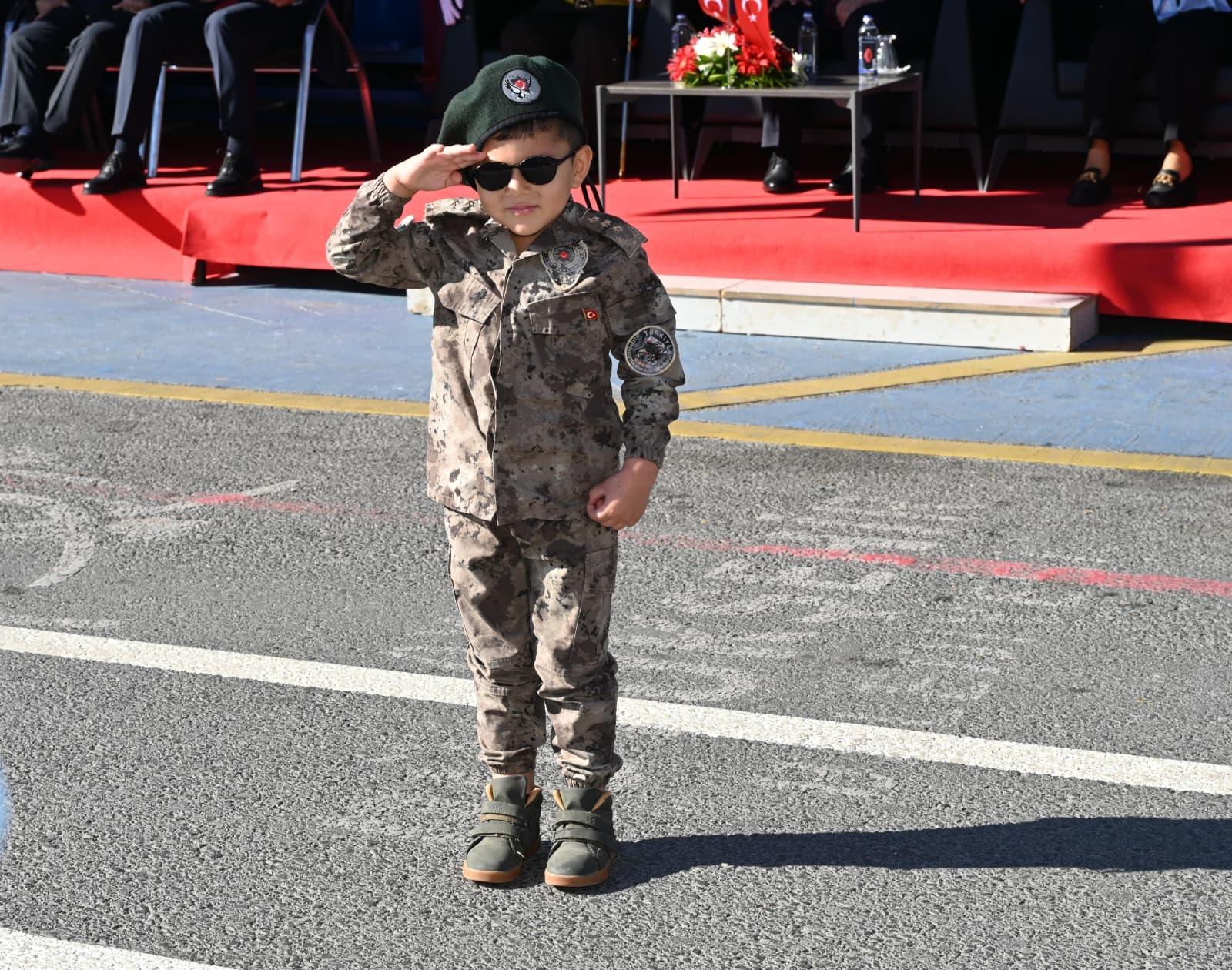 Mutluluğun tüm fotoğraf karelerinde yerini aldığı törende; Valimiz Sayın Yakup CANBOLAT ve beraberindeki Protokol Heyeti'nin halkın bayramını kutlamaları, Saygı Duruşu ve İstiklal Marşı'nın okunması, yayımlanan mesajların takdimi, Sayın Valimizin konuşmaları, çeşitli yarışmalarda derece alan sporcuların ödül töreni, şiirler, halk oyunu gösterileri, milli helikopterlerimizin geçişi, 100 metrelik Türk Bayrağı'mızın geçişi, muharip uçakların geçişi ve geçit töreni ile coşku ve gurur dolu bir tablo oluştu.