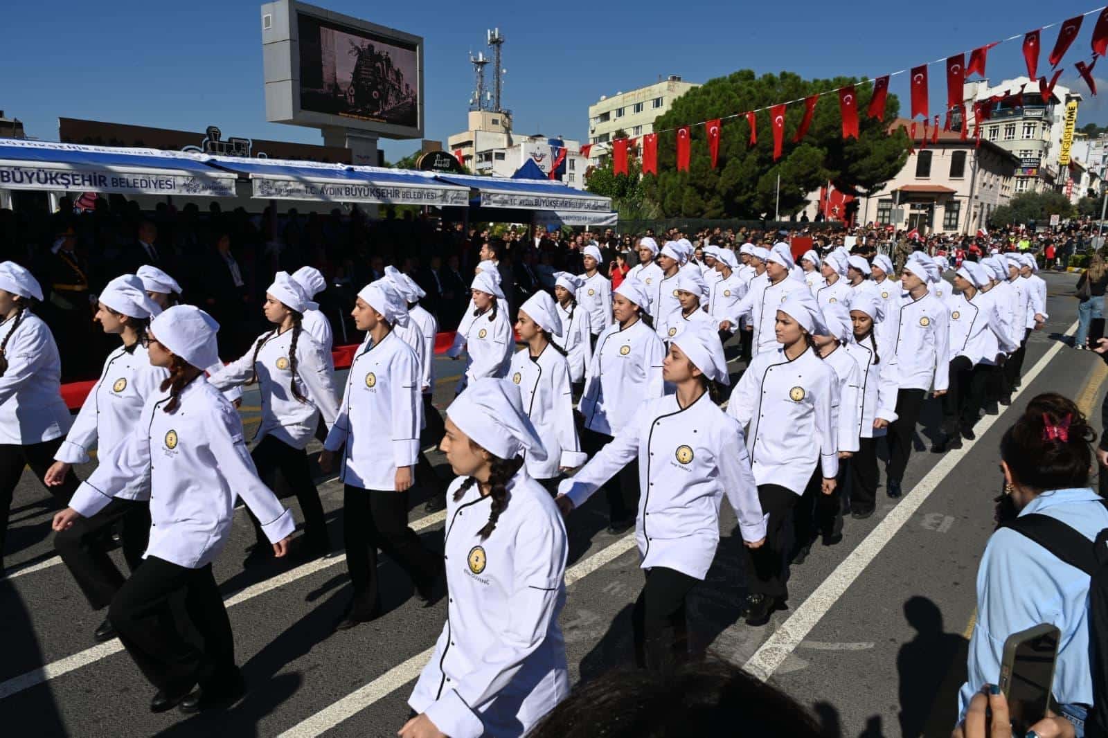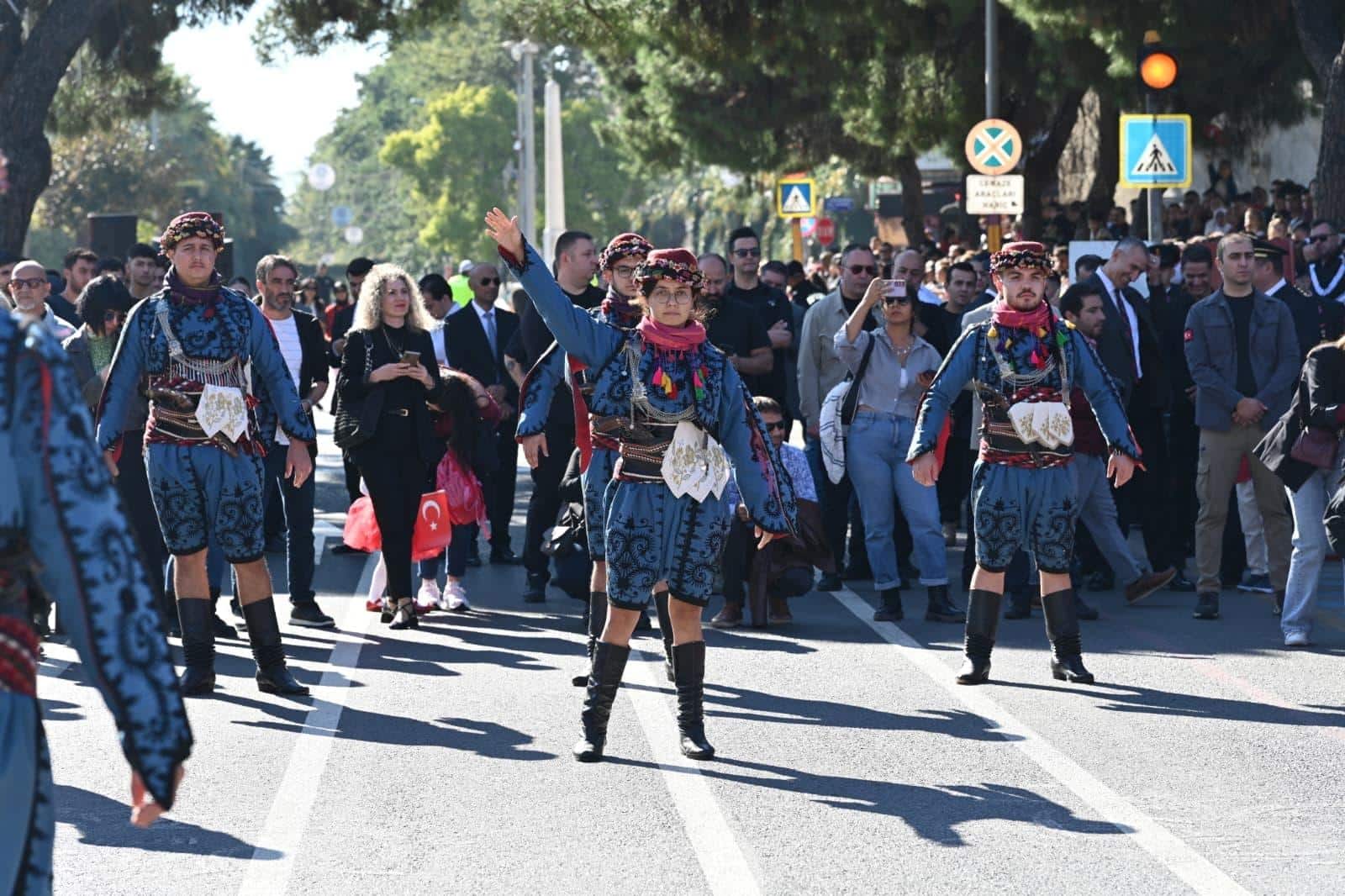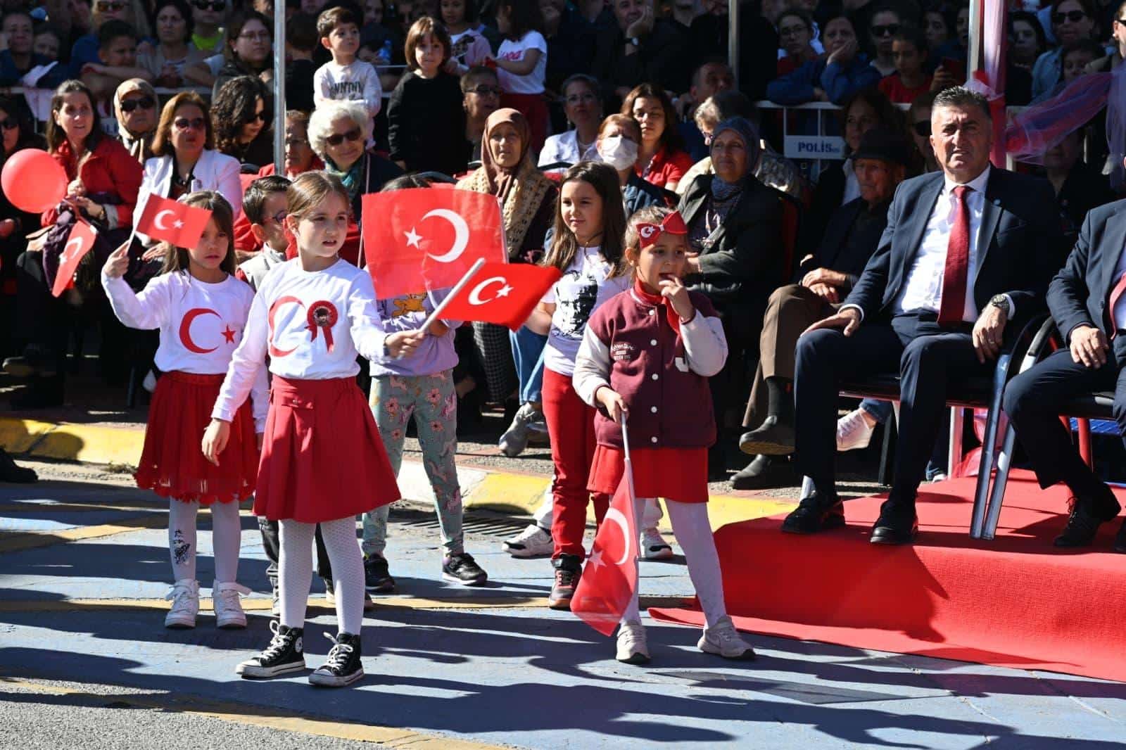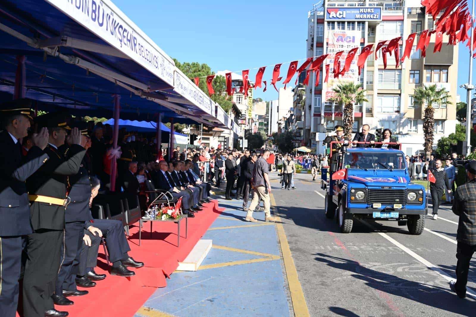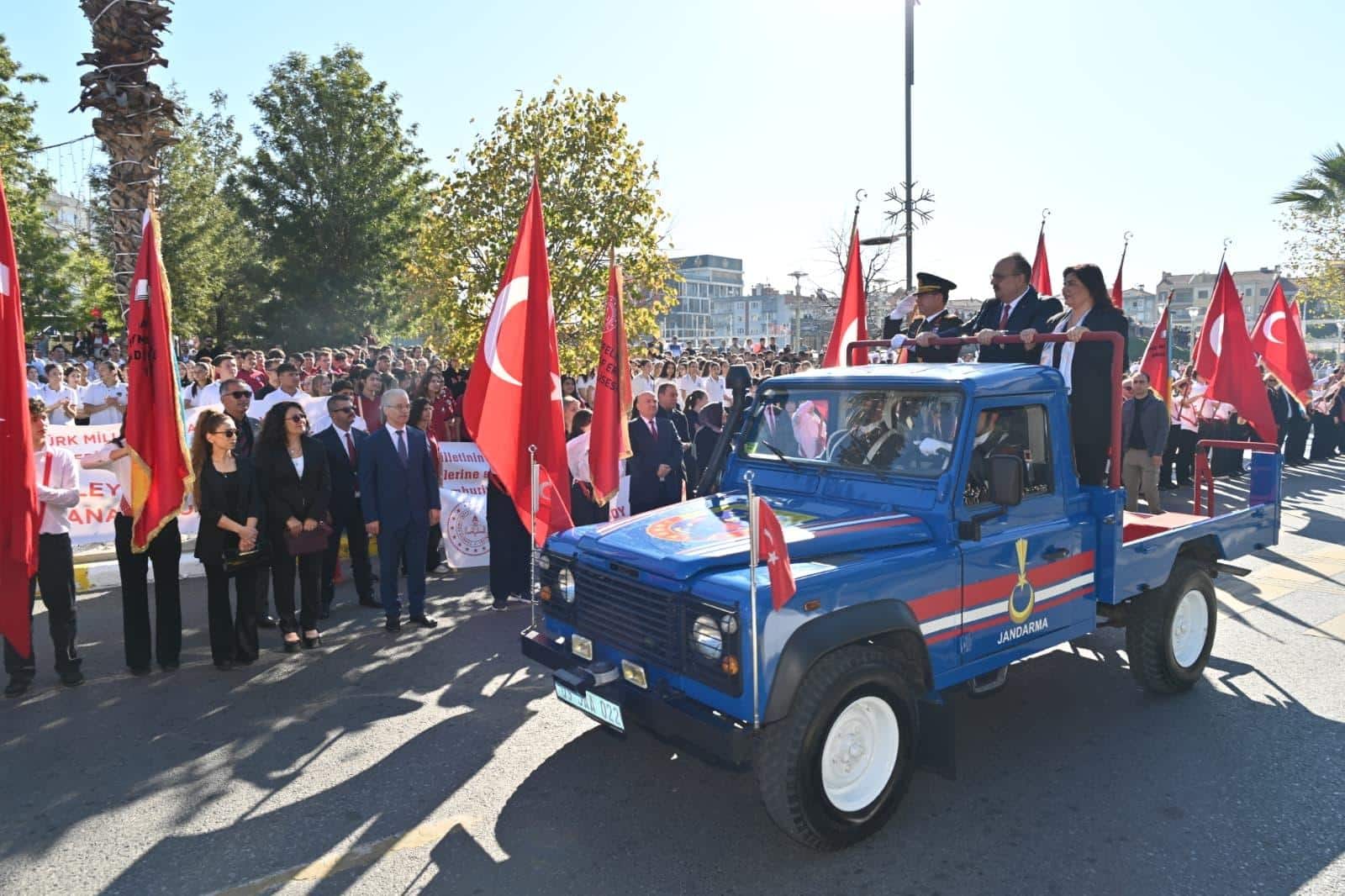 Mutluluğun tüm fotoğraf karelerinde yerini aldığı törende; Valimiz Sayın Yakup CANBOLAT ve beraberindeki Protokol Heyeti'nin halkın bayramını kutlamaları, Saygı Duruşu ve İstiklal Marşı'nın okunması, yayımlanan mesajların takdimi, Sayın Valimizin konuşmaları, çeşitli yarışmalarda derece alan sporcuların ödül töreni, şiirler, halk oyunu gösterileri, milli helikopterlerimizin geçişi, 100 metrelik Türk Bayrağı'mızın geçişi, muharip uçakların geçişi ve geçit töreni ile coşku ve gurur dolu bir tablo oluştu.