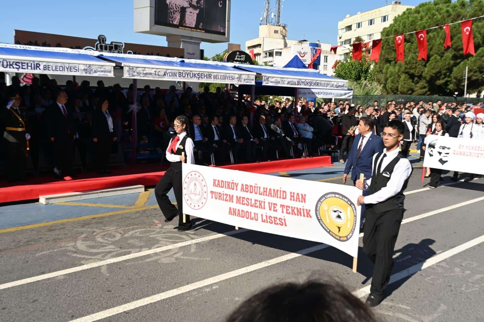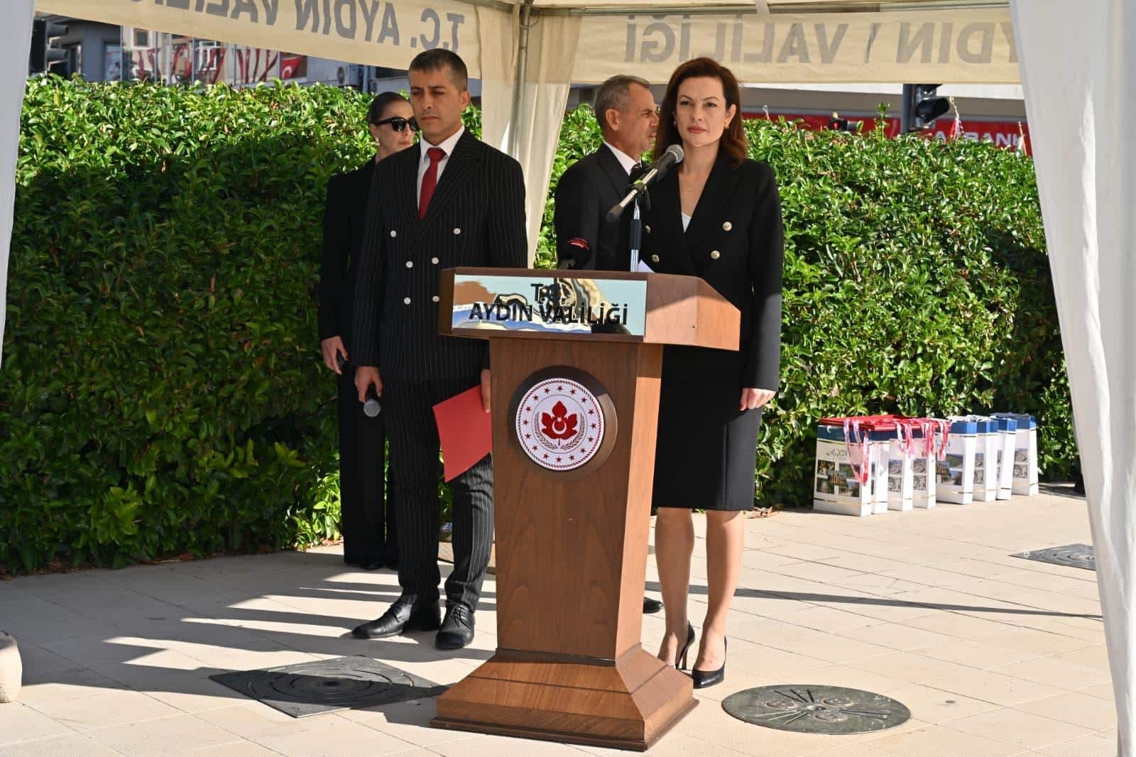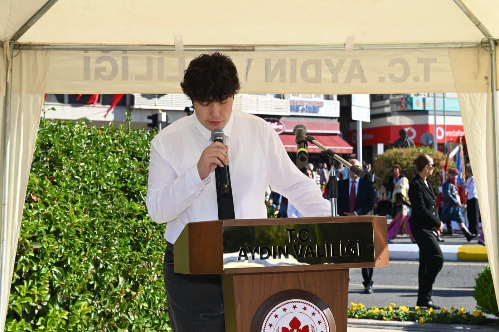 Valimiz Sayın Yakup CANBOLAT'ın teşrifleri ile; Aydın Milletvekilleri, Protokol Heyeti, İl Milli Eğitim Müdürümüz Sayın Mehmet YİĞİT, il kurum amirleri, sivil toplum kuruluşları, vatandaşlar ve öğrencilerimizin katılım sağladığı törende Cumhuriyetim 102. yılı coşkusu hâkimdi.