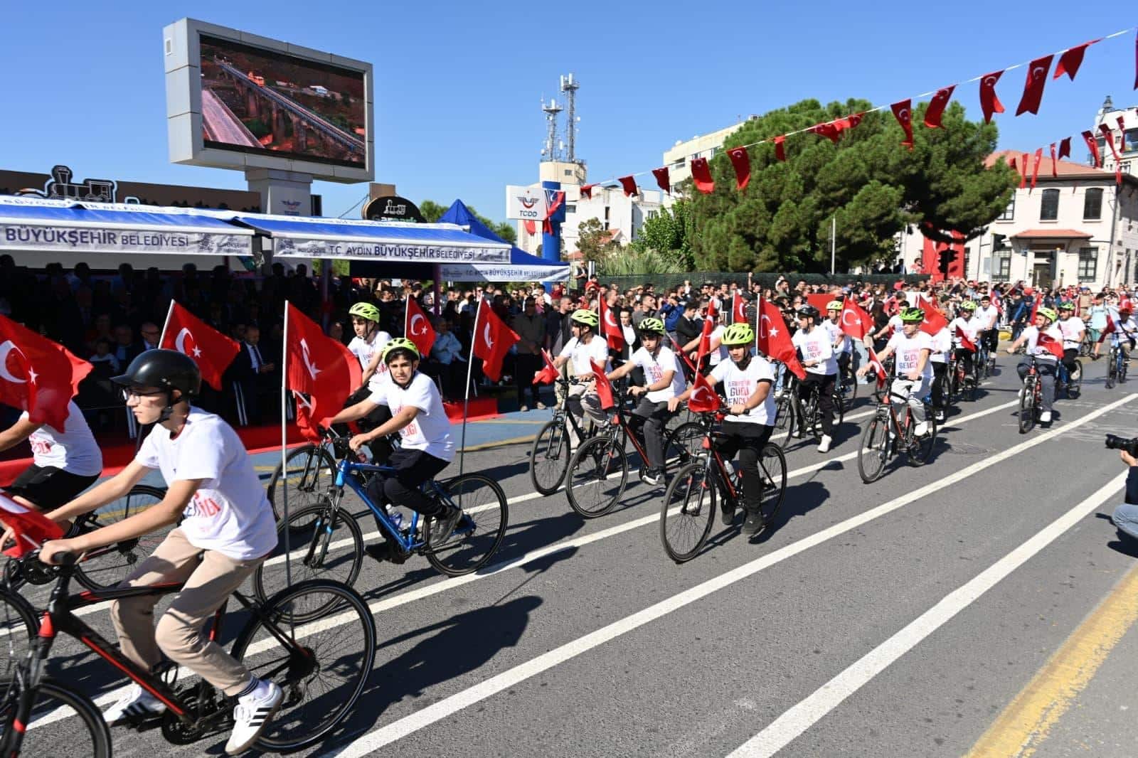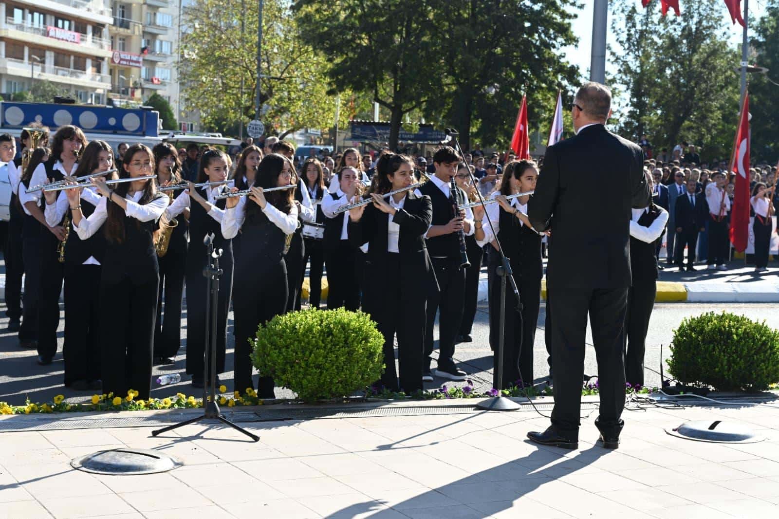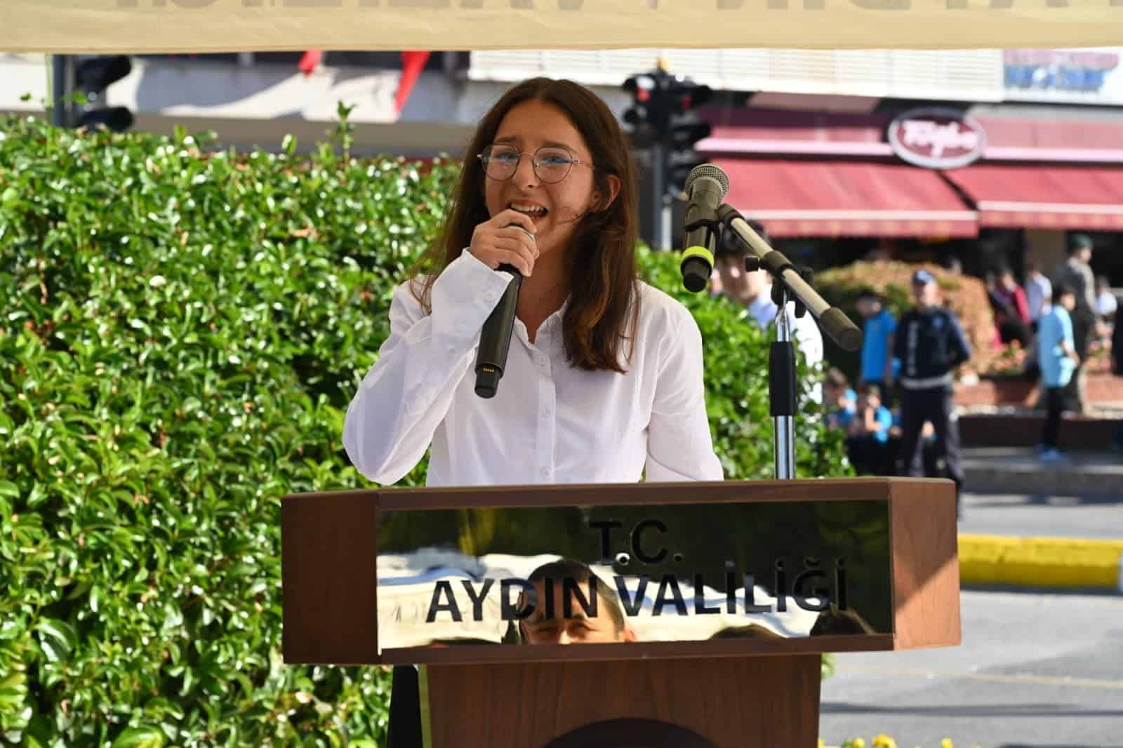 Valimiz Sayın Yakup CANBOLAT'ın teşrifleri ile; Aydın Milletvekilleri, Protokol Heyeti, İl Milli Eğitim Müdürümüz Sayın Mehmet YİĞİT, il kurum amirleri, sivil toplum kuruluşları, vatandaşlar ve öğrencilerimizin katılım sağladığı törende Cumhuriyetim 102. yılı coşkusu hâkimdi.